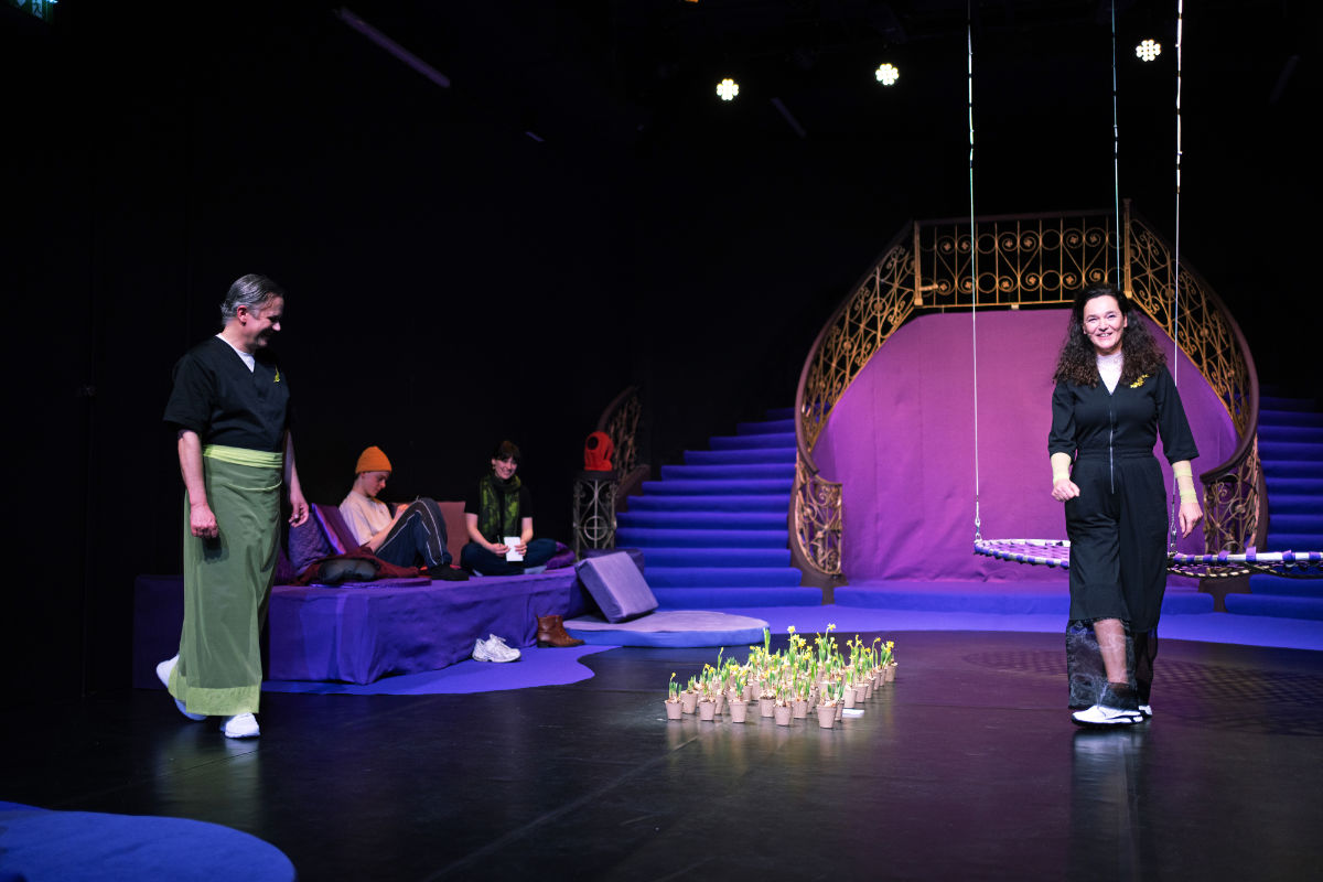 Wien 2066: In einem unterirdischen SiestaSpace® zum Abkühlen trifft sich eine Solargesellschaft. Das Leben verläuft langsamer, Grundbedürfnisse sind gesichert ohne Lohnarbeit, neue Berufe der Fürsorge entstanden. Claudia Seigmann & Markus Zett laden in ihrem Stück zum spielerischen Utopietraining ein: Besucher:innen erkunden gemeinsam eine solidarische Zukunft jenseits von Patriarchat und Kapitalismus.